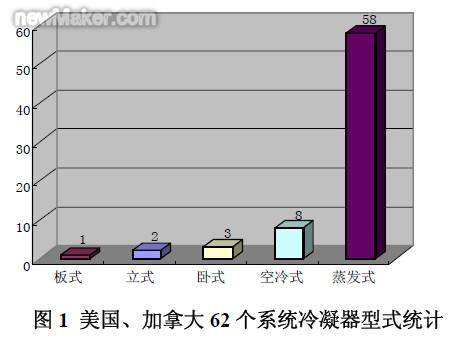 蒸發(fā)式冷凝器是一種高效節(jié)能的換熱設(shè)備。由于傳熱效率高、結(jié)構(gòu)緊湊和安裝方便等優(yōu)點(diǎn),目前已經(jīng)在美國等國家得到廣泛的應(yīng)用。根據(jù)作者對美國和加拿大62 個公用冷庫制冷裝置的調(diào)查[1]發(fā)現(xiàn),蒸發(fā)式冷凝器的應(yīng)用約占81%,見圖1。