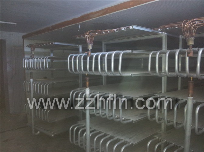鋁合金板式擱架排管是我公司研發(fā)的用來替代Ø38無縫鋼管擱架排管的新一代產(chǎn)品.廣泛應(yīng)用于分割肉類、水產(chǎn)品、禽類、面食、調(diào)理食品以及部分果蔬食品的快速凍結(jié)。與傳統(tǒng)的無縫鋼管擱架排管相比具有以下優(yōu)點(diǎn):