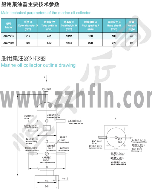 船用集油器用于收集各種容器中的冷凍機油,然后集中排放。產(chǎn)品有ZCJY219、ZCJY325兩種規(guī)格。