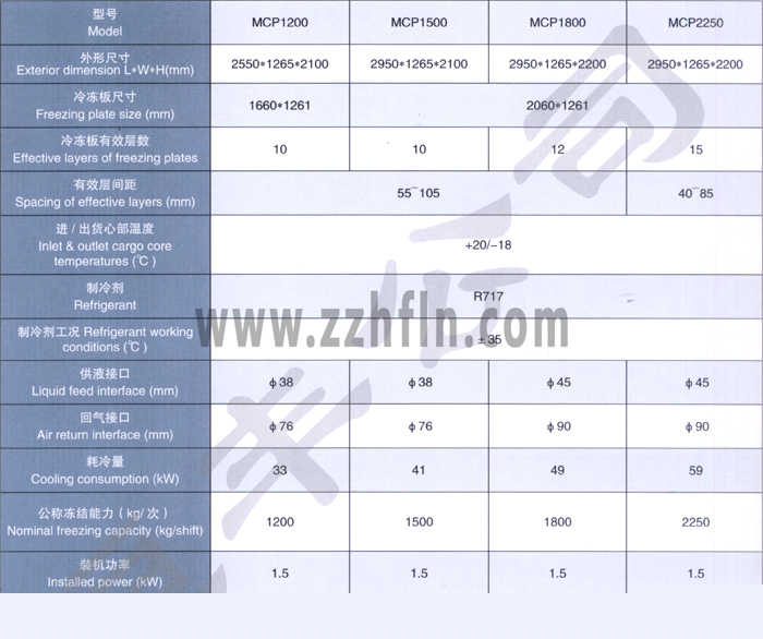注:1、凍結能力投盤凍帶魚計算,魚盤規(guī)格600*400*80mm,15kg/盤;
